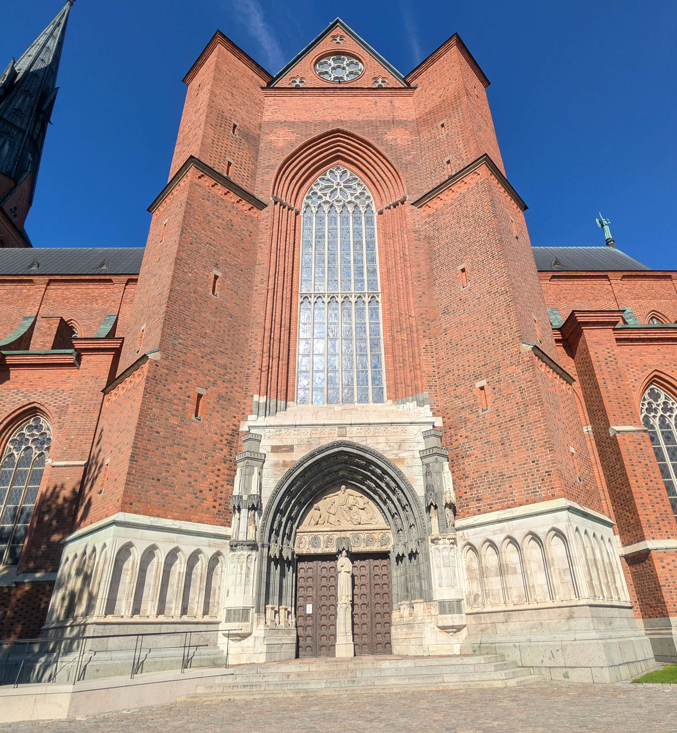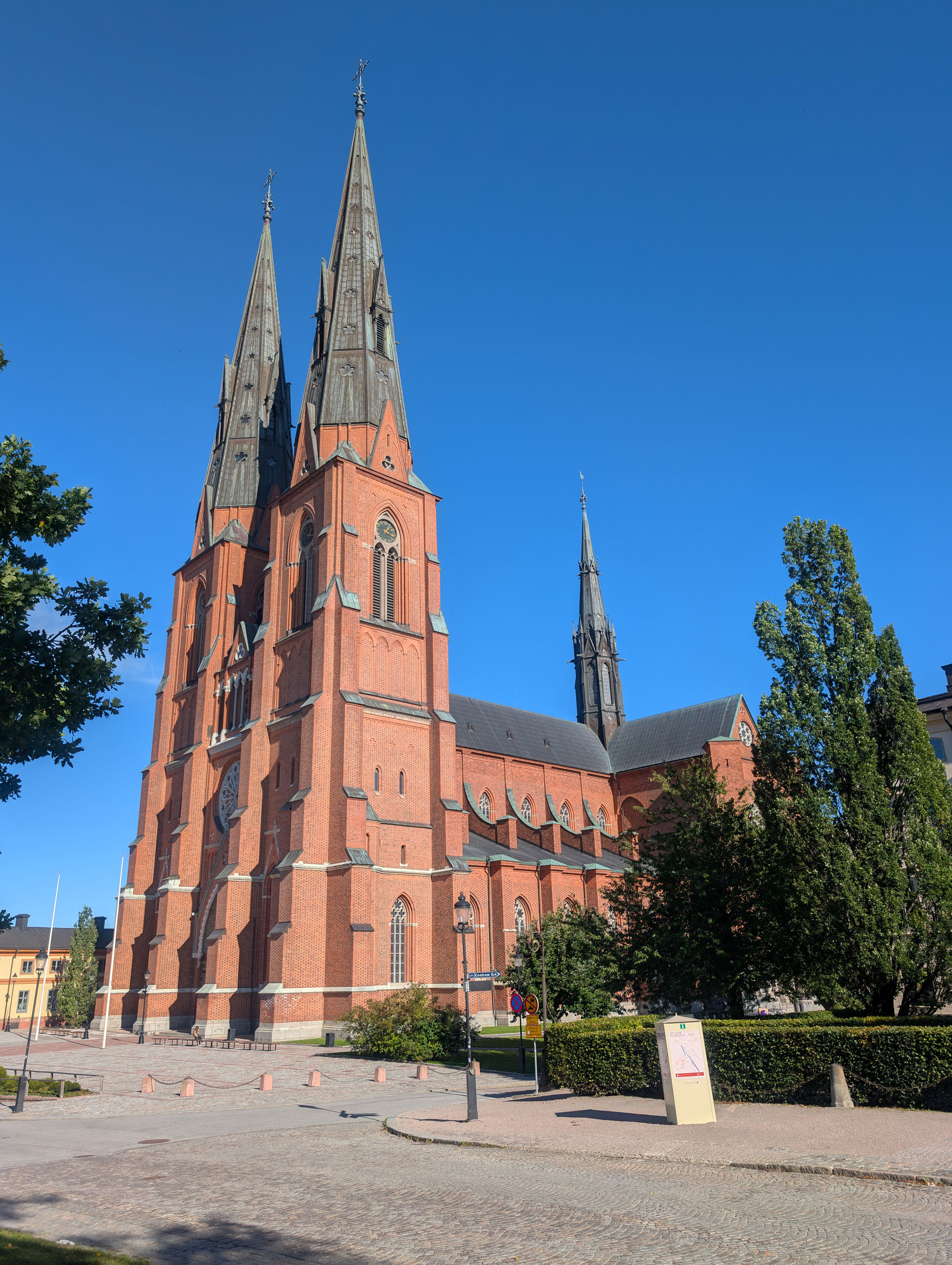 Uppsala domkyrka är Nordens största katedral och ett av Sveriges mest betydelsefulla kulturhistoriska byggnadsverk. Kyrkan uppfördes från slutet av 1200-talet och invigdes 1435. Den är byggd i gotisk stil med höga tegelvalv, strävpelare och dubbla tornspiror.