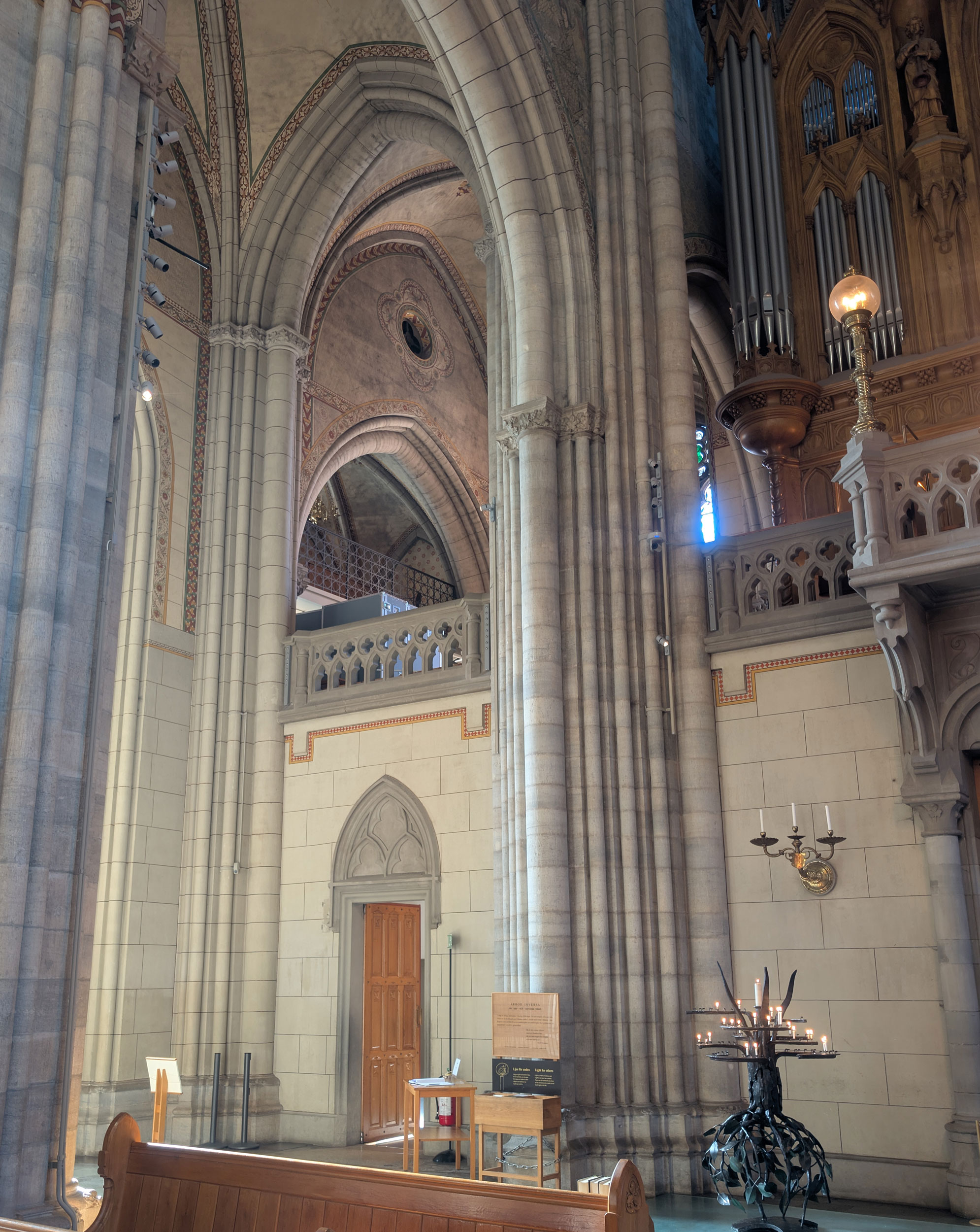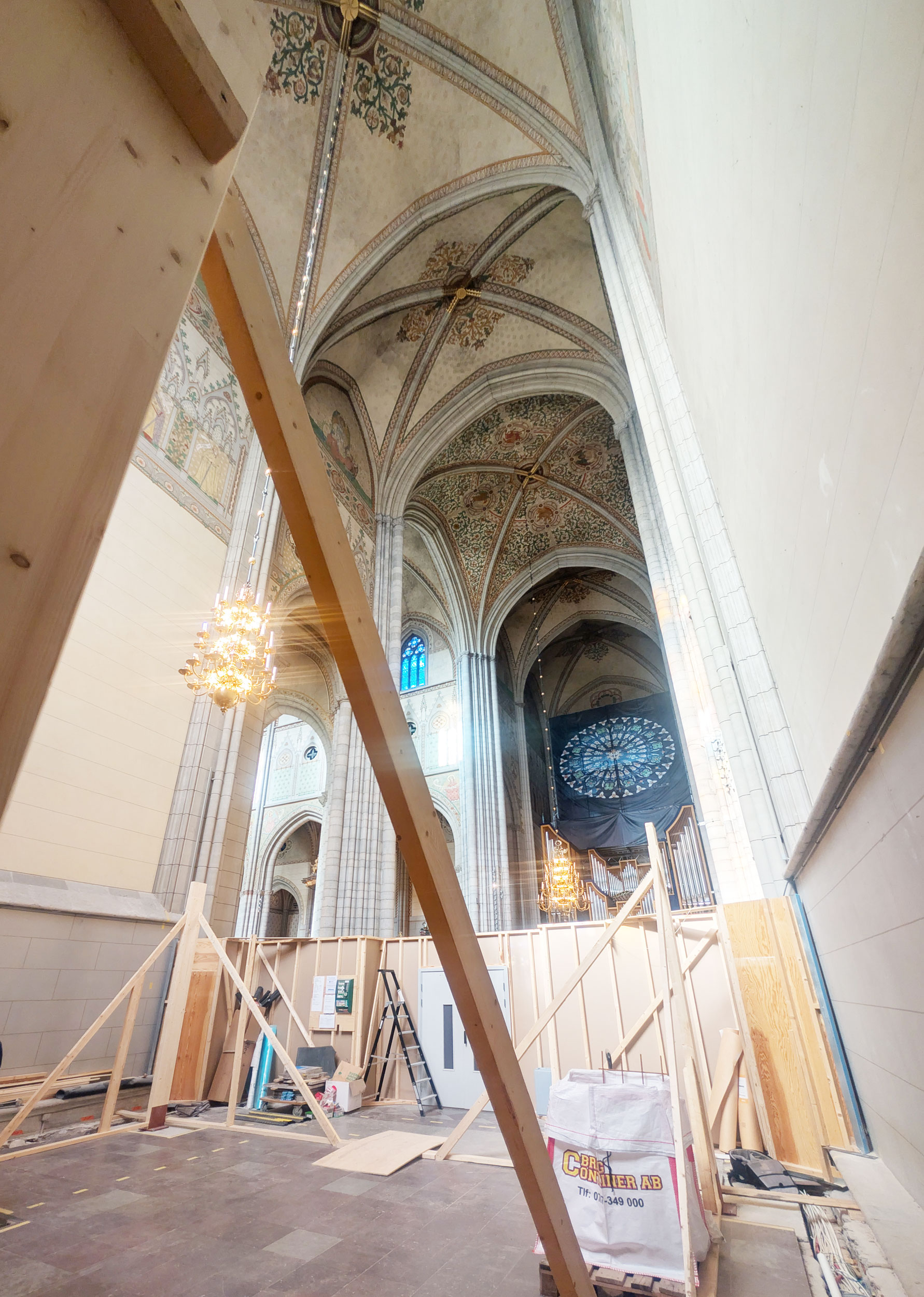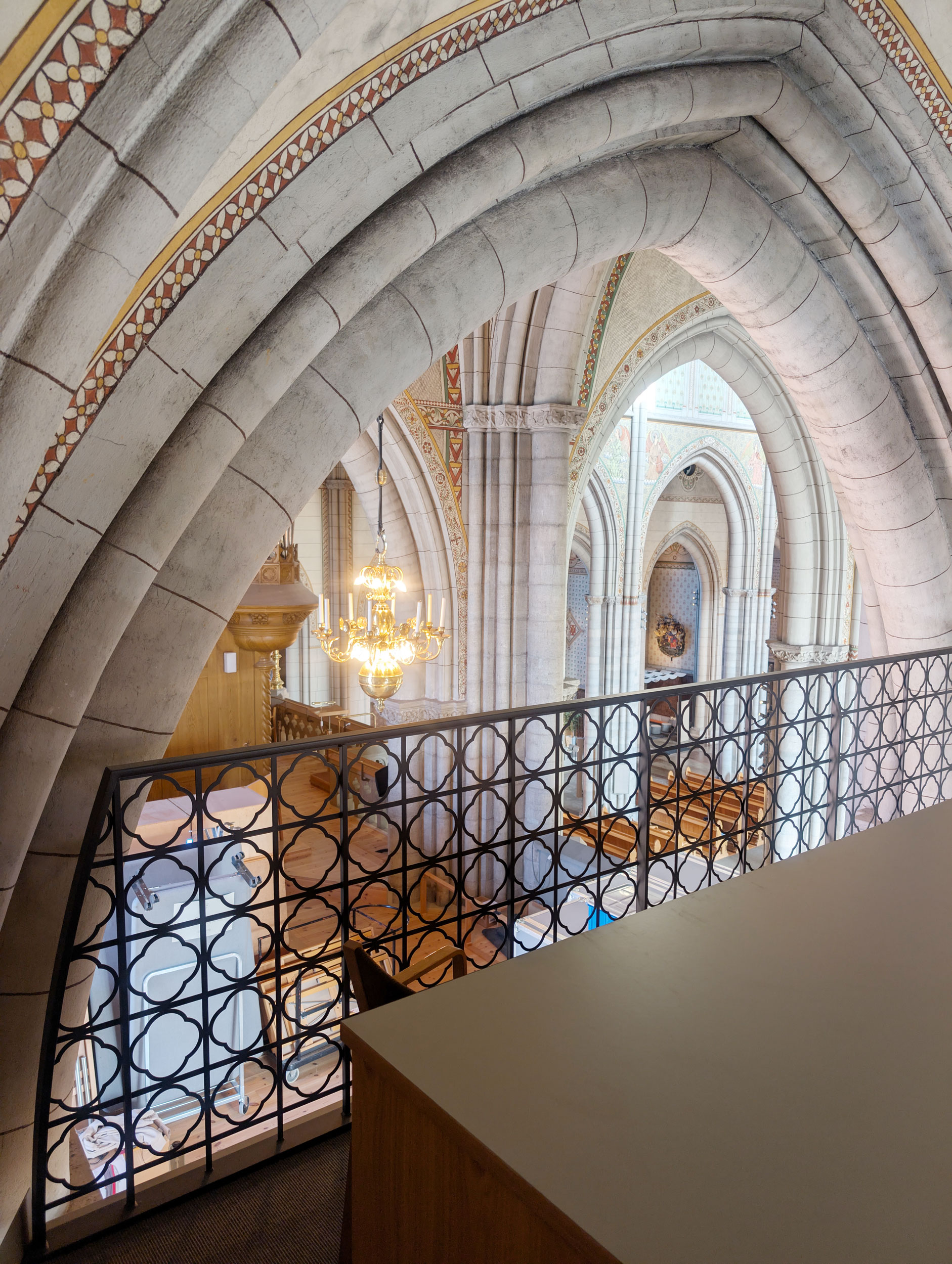 Kåver & Mellin har projekterat två entresolbjälklag placerade på vardera sida om orgeln för att tillgodose kyrkans behov av utökad förvaring av orgelkomponenter.